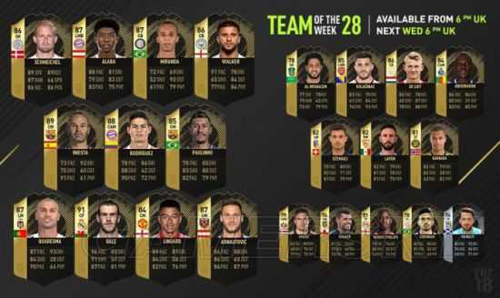 《FIFA18》EA官方会根据每周球员在现实中的表现评选出每周的最佳阵容,下面就为大家带来《FIFA18》第28周最佳阵容,由本周在中国杯上演帽子戏法的贝尔和在国家队表现优异的保利尼奥领衔,希望大家喜欢。