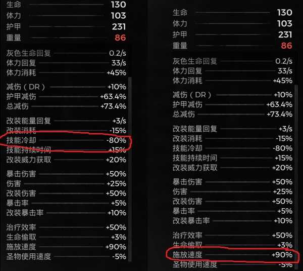 在使用了信心助推、岩石迷雾,触发了硬核金属戒指以后有70%的DR减伤,近战攻击蓄力中有90%减伤,如果使用虚空之心来度过真空期可以达到120%减伤