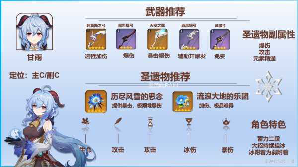 《原神》甘雨作为一个在上线之前人气就很高的角色,相信有不少玩家都投入了全部资源去抽她,那么成功抽到过后的培养也是必不可少的,下面请看“悠丶夜”分享的《原神》甘雨装备搭配及玩法推荐,希望能够帮助大家。