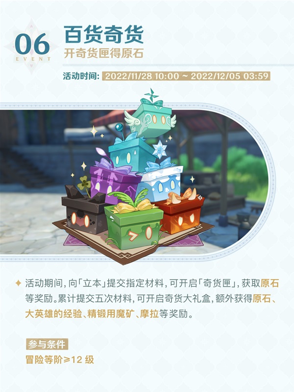 正文 《原神》3.2版下半期活动一览 游戏小天使 /2025-04-19 07:08:47 /46 浏览量 0419 《原神》3.2版下半期即将更新,届时会有新的UP池和活动上线。下面请看由“飞翔的丘丘人”带来的《原神》3.2版下半期活动一览,一起来看看吧。 春草细还生,春雏养渐成。 旅行者们好呀~一起来看看近期即将开启的活动吧! -- 展开阅读全文 --