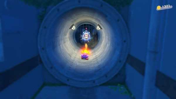 第三只可通过一个大炮将自己打上去,管道内可以看到