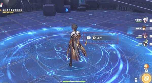 将方形装置切换到这个图案之后脚下出现一个魔法阵,操作魔法阵往上升起