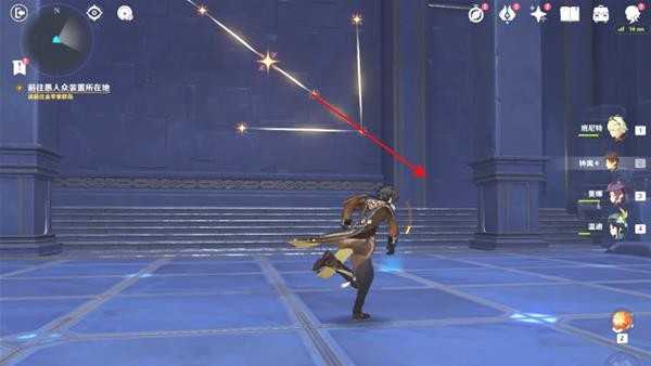拾取宝箱之后我们看到一个超级大的箭头,顺着箭头的方向打开石门