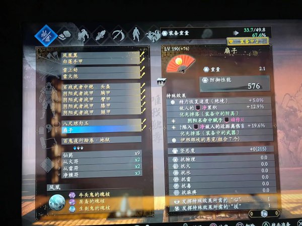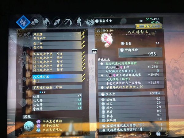 剃刀镰,享受咒属性成长,老阴阳人必备。但我这凤凰翼是真的垃,一个星号词条都没有哈哈,所以这套通关装备对装备质量的要求是真的低。