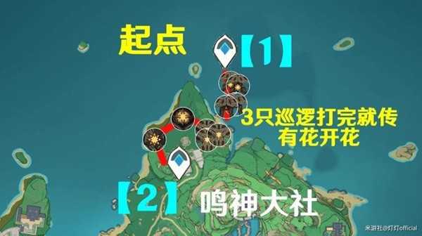 在往期路线中,我们选择了稻妻-荒海作为起点,这个点位在米游社大地图里面是非常近的,但是实际体验很差,四只机兵无法达成聚怪,需要打2~4波才可以解决