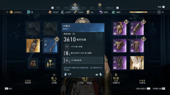 弓用大角弓,铭刻暴击几率;也有选择黄色铭文如30%护穿的,但是70版本仍然做不到100%暴击,因此暴击很重要,弓是武器里唯一能加暴击的,至于黄色铭文,我们可以在两把近战武器上铭;因此暴击率是弓的唯一选择。