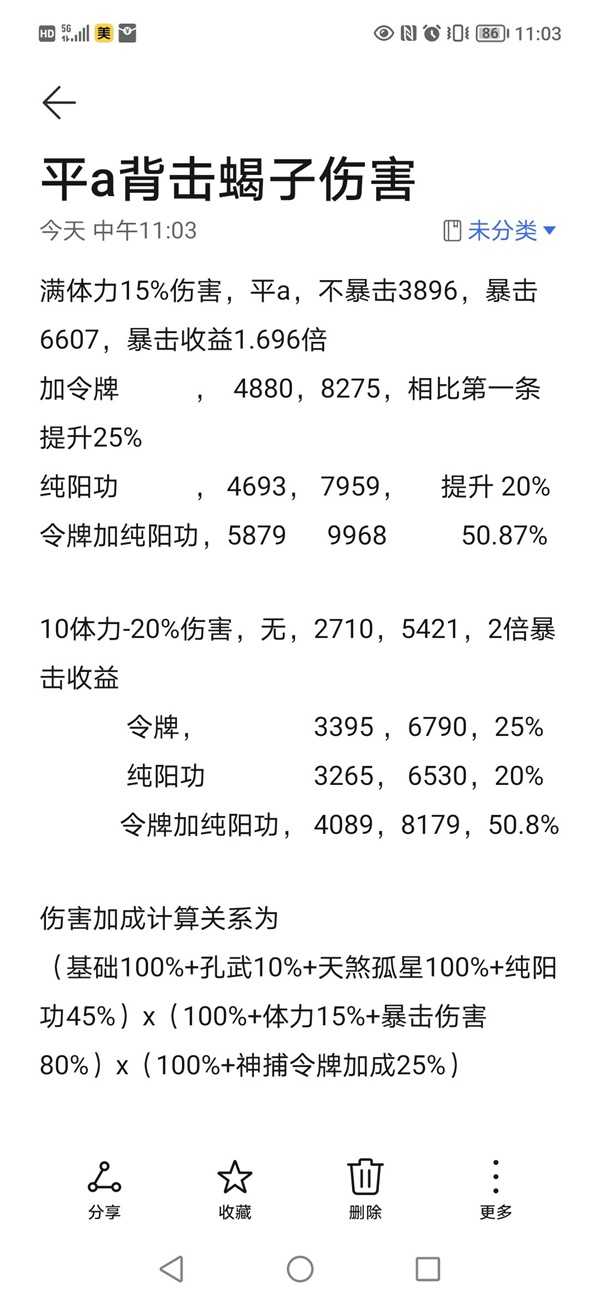 再发一个,几种伤害加成之间的计算关系,我拿我自己的号去平a背刺蝎子得出的计算方式。
