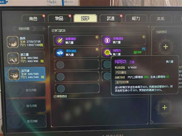 另外,我没有学落千雪一开始给的三本内功,我憋到回村学了药师的内功,主要还是药师内功每回合回蓝,可以撑过前期一些尴尬时刻,初始内功不学也罢,后期反正用纯阳功。