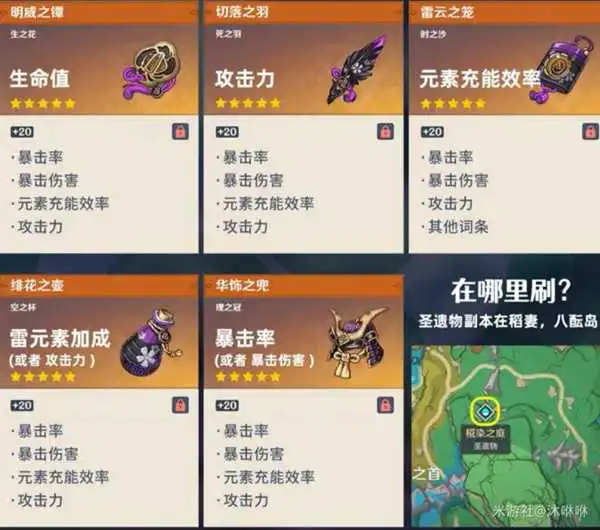 词条推荐:充能沙,攻击杯(雷伤杯也可以),暴击/爆伤头(根据自己的需要却哪种带那个)。