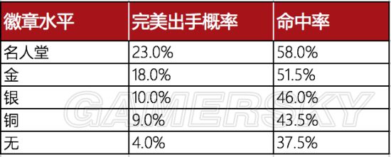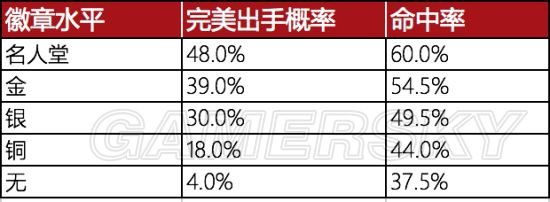 nba2klab对此徽章进行了测试,选取一个总评为80的球员以不同徽章水平在底角投出200个空位三分得到了以下数据结果: