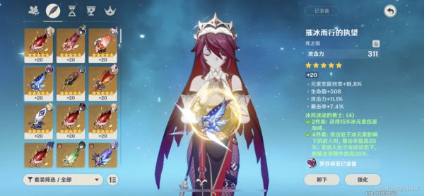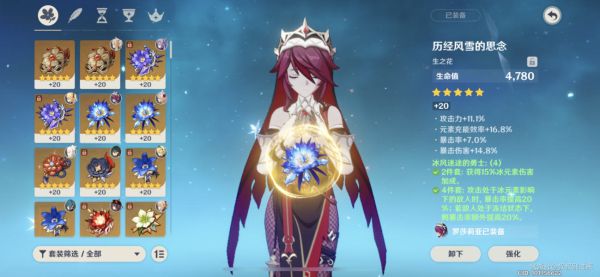 武器是决斗,由于罗莎莉娅是4星角色怎么都没法和5星比,所以我堆的都是偏向于暴击辅助。