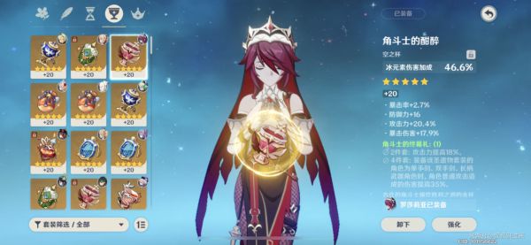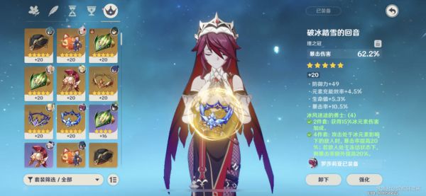 同时为了让她有一定的副c能力所以我头带的是爆伤,下面是圣遗物。