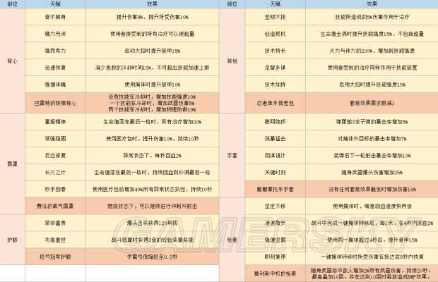 天赋说明及部份用词经过个人修饰,并不是游戏内所使用的原文,有所差别。