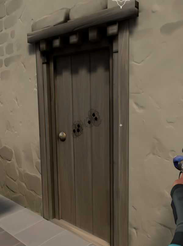 这张图的墙上有很多可以让你扫射过去的窗户跟门的贴图(特别是连接其它墙壁的地方)。