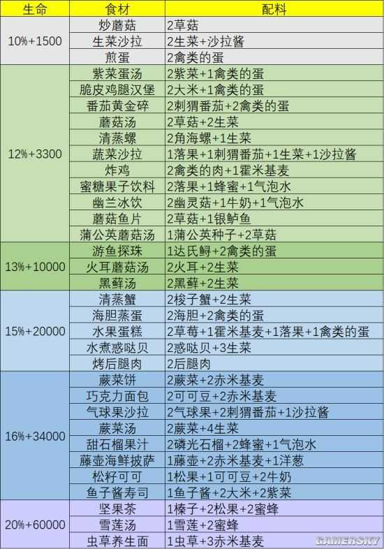 不同品质的食材回血量也有所不同,下面我们就来看看回血食材怎么选择: