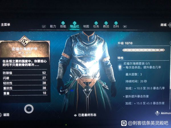 《刺客信条英灵殿》已经更新了尼福尔海姆套装,这套套装主打暴击流,蓝色、银色的搭配让这套装备更有神话气质,下面请看玩家“夏夜的风zc”分享的《刺客信条英灵殿》尼福尔海姆套装属性一览,希望能为各位玩家带来一些帮助。