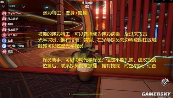 作为“迷彩特工”,通过变为地图中的物品(如:灯,花盆,牌桌)让自己所变物品更融洽的融入环境,躲避光学探员的抓捕。可以关注光学探员位置,然后及时变换自己的位置,最好是已经被搜索过的地方。