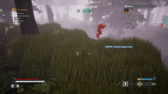 在这个狩猎场上除了目标点之外,还散布着许许多多的部件和几座「升级点」,这些东西的位置在刚开始是隐藏的,当逃亡者发现它们时,可以透过射击普通箭矢来标记他们,借此获得 NPI 能量。