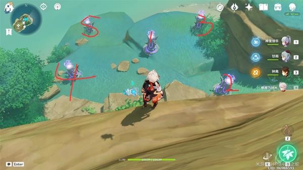 这一次在左侧的后山腰上,有一处可以打破的岩石,打碎即可看到第三只仙灵啦