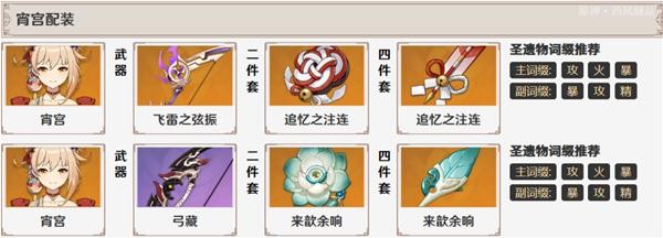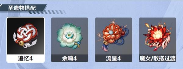 圣遗物的选择上,毕业选择「追忆之注连」四件套,「来歆余响」「逆飞的流星」词缀好可以先用着过渡,魔女散搭主要是前期投入圣遗物资源较少的新人可以选择。