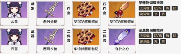 第一套是云堇的毕业圣遗物,可以为她提供最高的防御力加成。