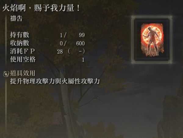 记得要按照黄金树>雷武器>火焰这个顺序来施放,涂油可以舍弃雷武器之后涂油再按火焰阿赐予我力量,但通常多数王的是弱雷所以简单万用就雷武器。