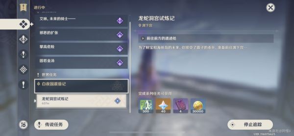 1、首先需要打开渊下宫的大门,进入之后会自动接取【白夜国晨昏记】-「龙蛇洞宫试炼记」