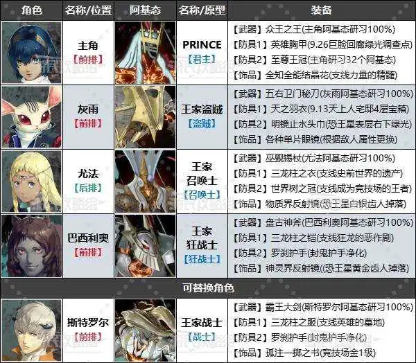 9月24日后会解锁主角的最强阿基态PRINCE(君主原型),在触发此事件后,前往阿卡德梅与莫尔对话即可解锁每个角色专属的王家阿基态,完成支持者等级和研习条件即可转换为王家阿基态。可以转换王家阿基态后,参考本文最开头介绍的大后期阵容来应对各种后期迷宫或战斗即可。