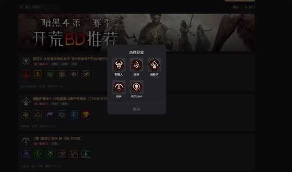 通过新建Build按钮就可以进入正式创建BD的流程,首先第一个页面是让大家选择自己的职业,随后会进入不同职业的BD构筑详情页。