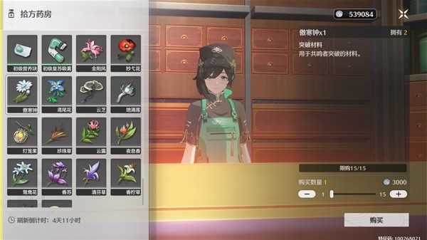 拾方药房,今州城界最底层,购买15朵,商店1周刷新一次。