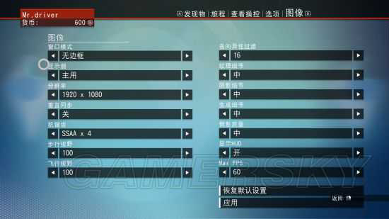 抗锯齿:SSAA*4(这样既保证画面又保证帧数)