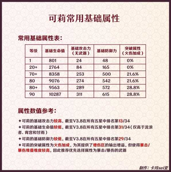可莉具有明显的远程角色与输出角色特征,基础攻击较高但血少皮脆,同时抗打断能力低于近战角色。