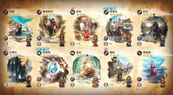阵容搭配方面,请朋友们记住一点,《歧路旅人大陆的霸者》的卡组很难复刻,阵容不是你想配,想配就能配。抽到哪些就去研究哪些,按照目前国服的情况,开局之后歪出3到4个五星属于正常操作,加上EX洁卡莉特和自选五星,眼看着一个八人阵容就要凑齐了,所以开局阵容最好是赛拉斯、洁卡莉特、莉妮特、薇欧拉、特欧,有了这五个之后可以一路推到60级,或者我换一句话来形容:这套阵容可以直接打穿当前版本。