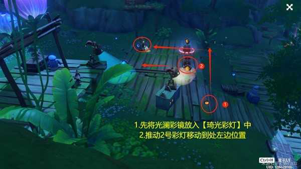 我们需要先将1号【光澜彩镜】安装到【琦光彩灯】中,随后移动2号【琦光彩灯】,将其移动到最左边的位置