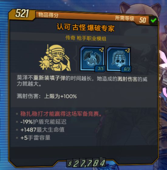 伤害低,不用上弹,可以一只手扔雷一手扫射,突出一个省心,还能配合下面这个莫泽不换弹夹增伤的模组。
