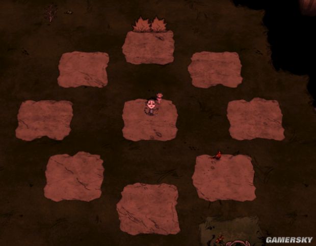从这里开始。看格子的点。标注红色的的点间隔是有2个点的。方向标注的就是种植两个浆果丛。聪明人一看就懂哈。对了。记得加网格MOD哟。