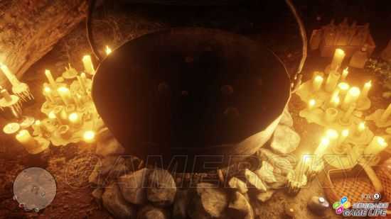 前往地图位置后会发现一间诡异的茅草小屋,屋内虽然没有人,却摆着一锅煮到一半的不明液体,看起来很像童话里常见的巫婆汤。玩家们可以走进锅边让主角喝下汤,不过喝完之后会失去意识。