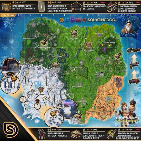 《堡垒之夜》第七赛季挑战任务攻略汇总,第七赛季挑战任务一图流一览,这里汇集了《堡垒之夜》第七赛季的所有通行证任务攻略,持续更新中。