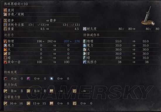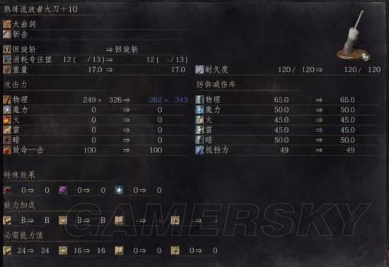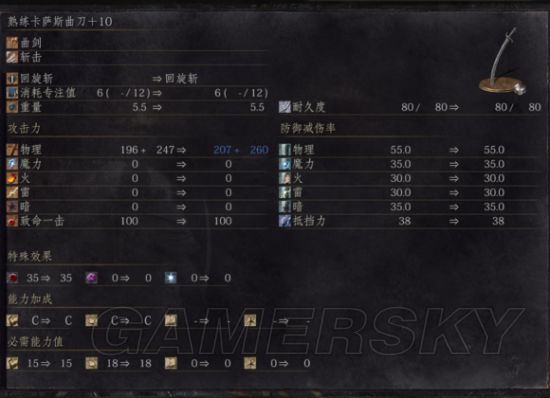 作为重量级武器的大曲剑中10.5的负重实在是难能可贵,比起其他重型武器这把大卡萨斯较低的负重给了玩家更多选择装备的空间,其较为灵活的手感,和不低的面板,这把大卡萨斯也能成为一把很不错的选择