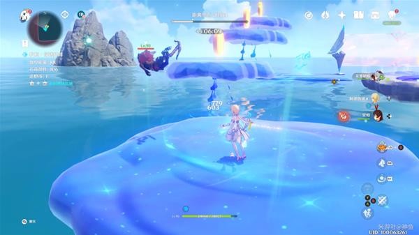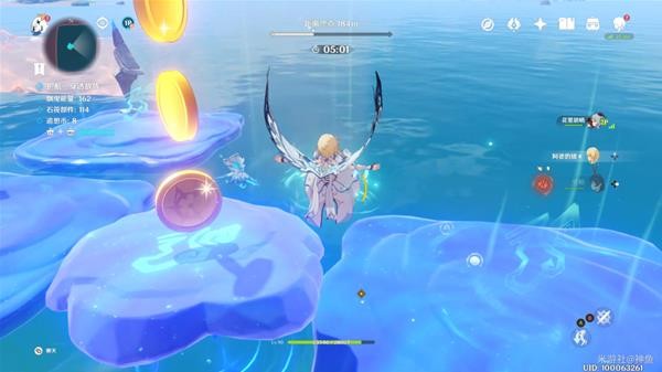 和之前一样,将丘丘人击入水中即可,不用打败他。石筏靠近平台,丘丘人浮现,石筏远离平台,丘丘人消失。