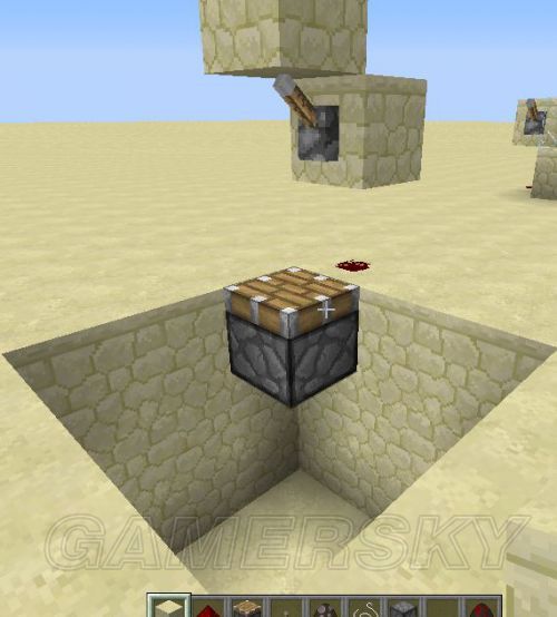 3.如图2所示 将红石 拉杆 方块这样放置play