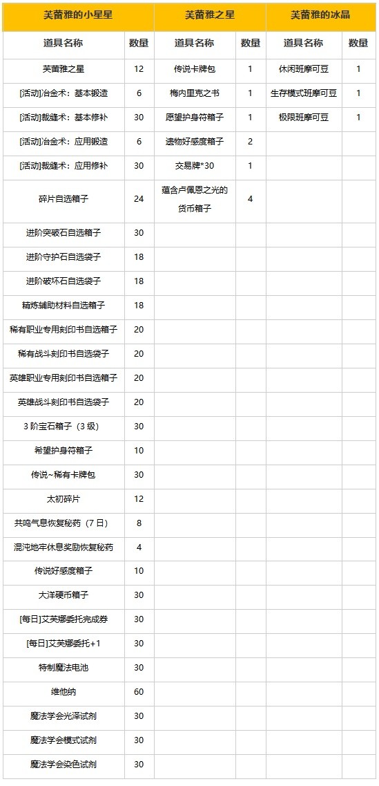 为了帮助冒险家们减轻获得每日收益的压力,在活动期间,冒险家们每日登录即可前往活动页面领取【[每日]艾芙娜委托完成券】*3、【大洋硬币箱子】*3、【克林斯内的闪亮硬币】*5。