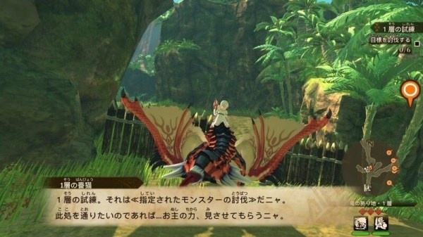 古地龙巢1层的试炼是讨伐指定怪物,击败6只标记出的大型怪物即可。