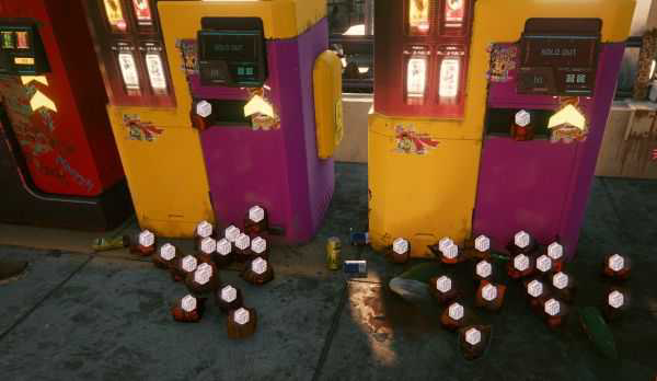 在“歌舞伎区:中央”这个快速旅行点旁边,上天桥一条街全是自动贩卖机,全部买空,下楼梯就有交货点售出。