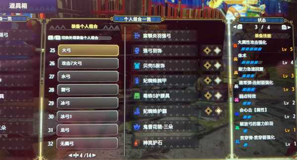 分享下自己的配装,攻7火弓放弃了弱特,其他的都是打属性的弓!除了武器不同装备是一套。