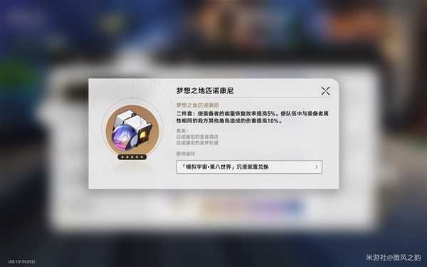 然后就是同属性角色的情况下,内圈二件套还可以选择梦想之地匹诺康尼套装,给同属性角色二次提升。