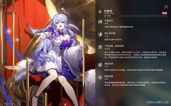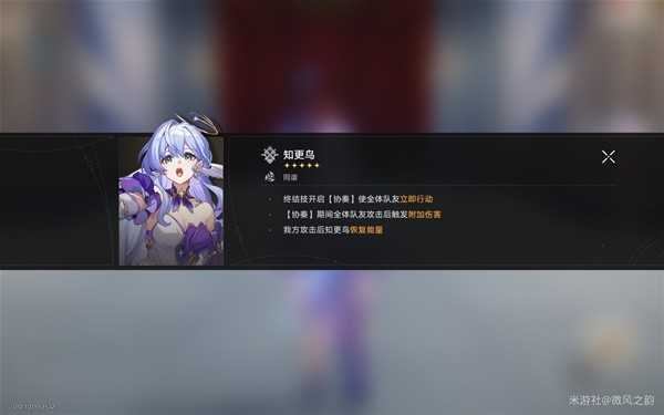 毕竟抛开这给追击队的25%爆伤,知更鸟也是一位实打实的五星同谐角色,可以给己方全体提升攻击力和爆伤以及释放终结技时全体拉条(行动提前)。