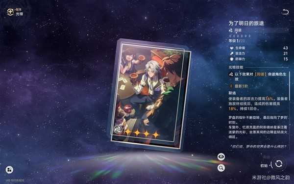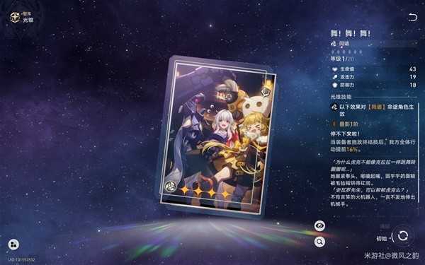 除此之外,上述光锥都没有或者以及被其他角色用了的情况下,我们也可以选择本期的活动光锥【为了明日的旅途】或者【舞舞舞】用着。