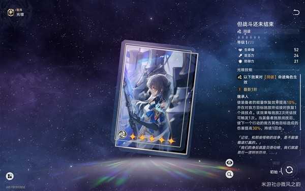 除了此光锥外,还推荐的就是【但战斗还未结束】和【镂月裁云之意】这两个光锥了,其属性和效果比较万金油,对知更鸟来说没有专属光锥的情况下这两个光锥是比较优先的选择。