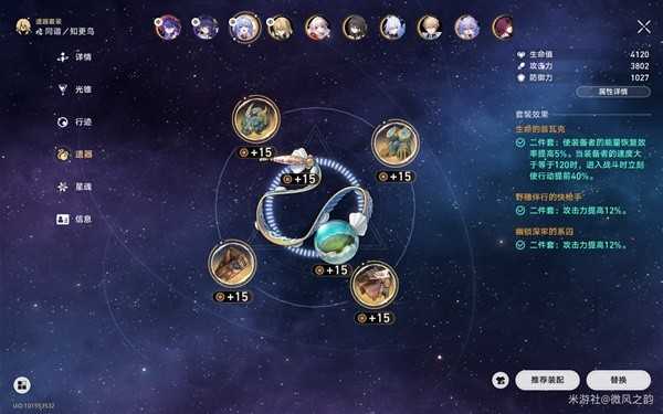 除此之外,内圈二件套还可以选择仙舟套,就是进一步提升攻击力,但是充能会稍微慢一点,各有优劣。